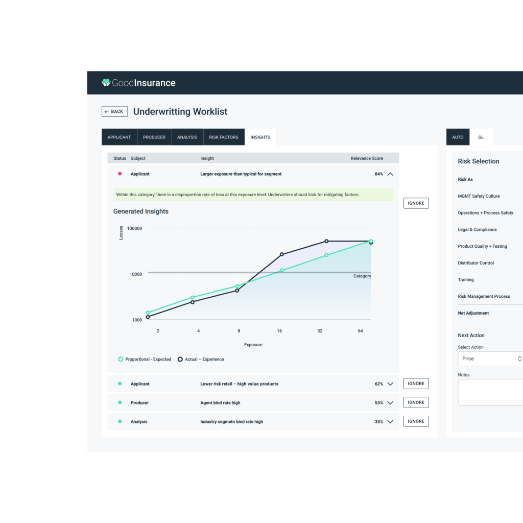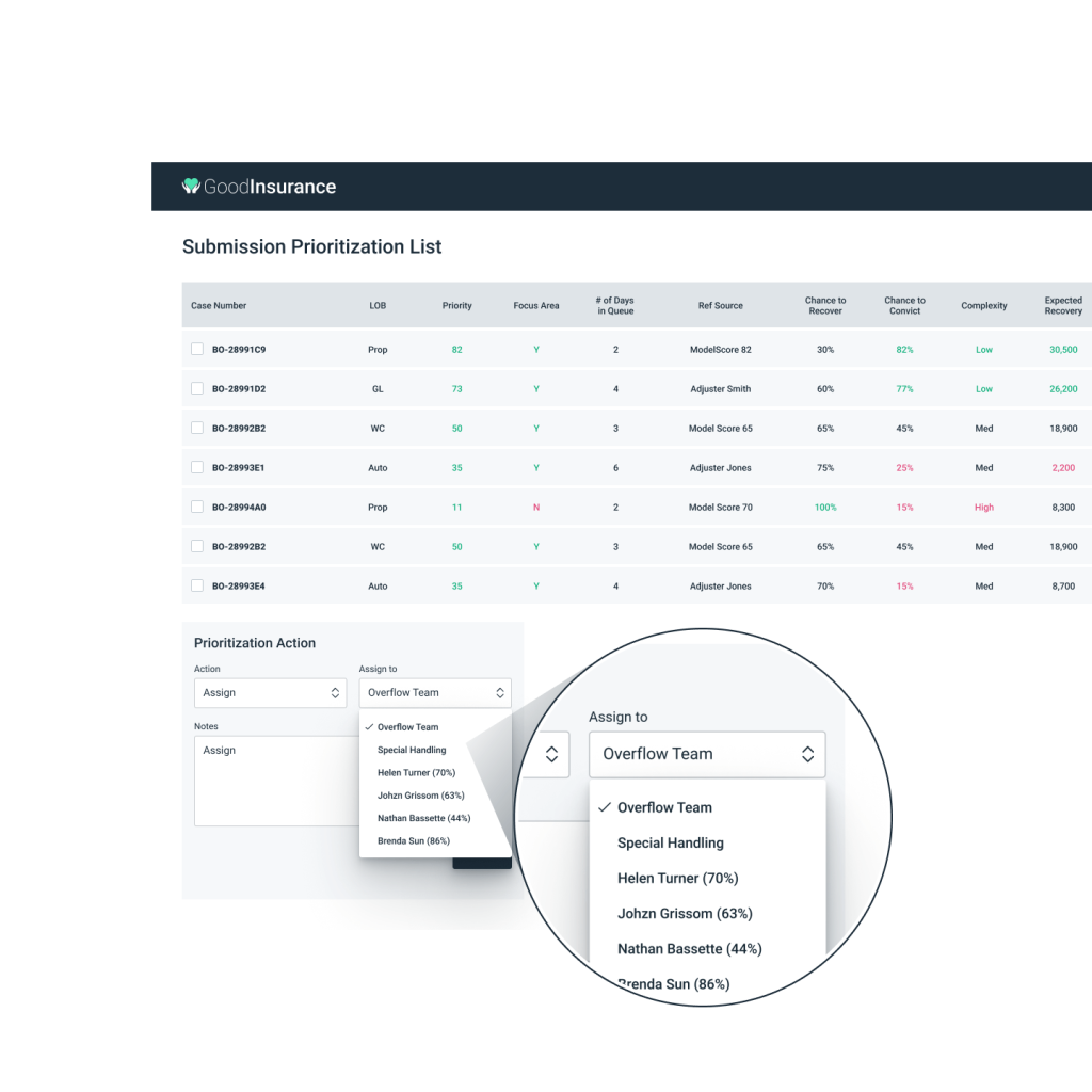 Managing a high-volume submission queue is a constant challenge for underwriting managers. GoodData’s submission insights feature helps managers prioritize submissions based on key information and performance metrics. By highlighting the most important aspects of each submission, underwriters can better allocate their time and resources, ensuring that the right person handles each case. This strategic approach ensures optimal decision-making, improving the likelihood of better business outcomes while increasing operational efficiency.